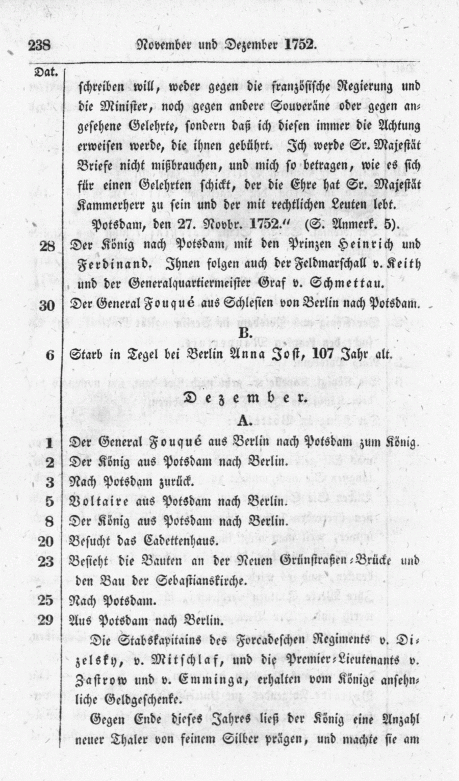 Potsdam, den 27. Novbr. 1752." (S. Anmerk. 5).
