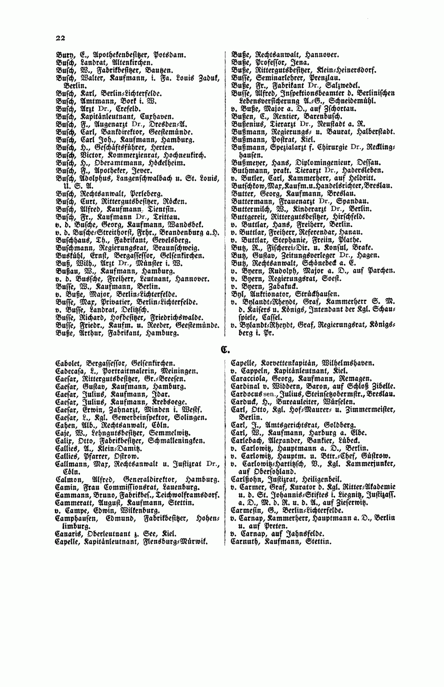 - Busse, Max, Privatier, Berlin-Lichterfelde.